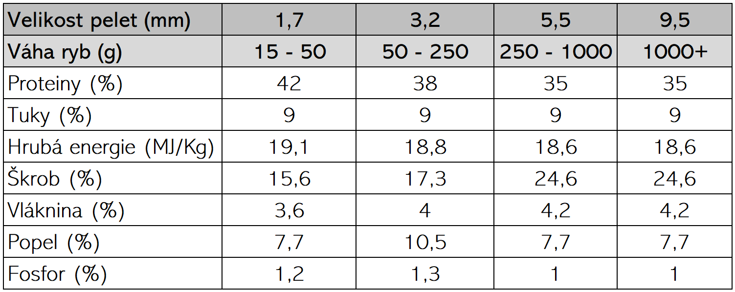 - Adaptabilní nutriční profil: Krmivo je přizpůsobeno specifickým nutričním potřebám kaprů a dalších ryb v rybnících v závislosti na různých fázích jejich života.